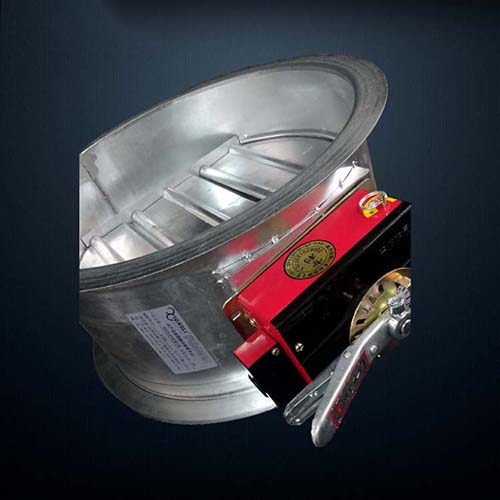 門上或原離控制操作機(jī)構(gòu)接受聯(lián)動控制電源(DC24V),機(jī)構(gòu)動作,閥門自動關(guān)閉;或當(dāng)亦迅速關(guān)閉,切斷煙氣與火勢沿風(fēng)管蔓延的通路