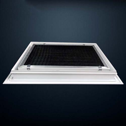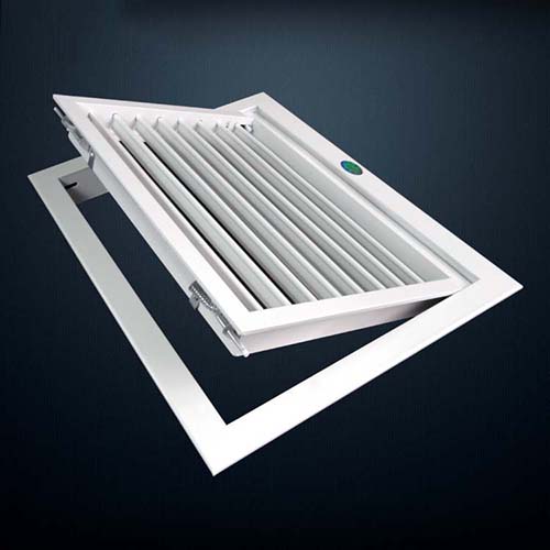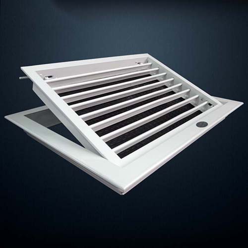 1.整個風口呈活門形式,活門與邊框間開關(guān)自如,有利于安裝與過濾器的配套使用,常用于客房的回風.與本風口配套的FK-5過濾器是固定在活門上,因此只要用手輕撥活門上兩邊的門栓,活門即可打開,邊能夠從活門上抽出或插入過濾器;關(guān)閉時,只要將活門推上,兩邊彈簧門栓即可自動上鎖,外表平整如一。